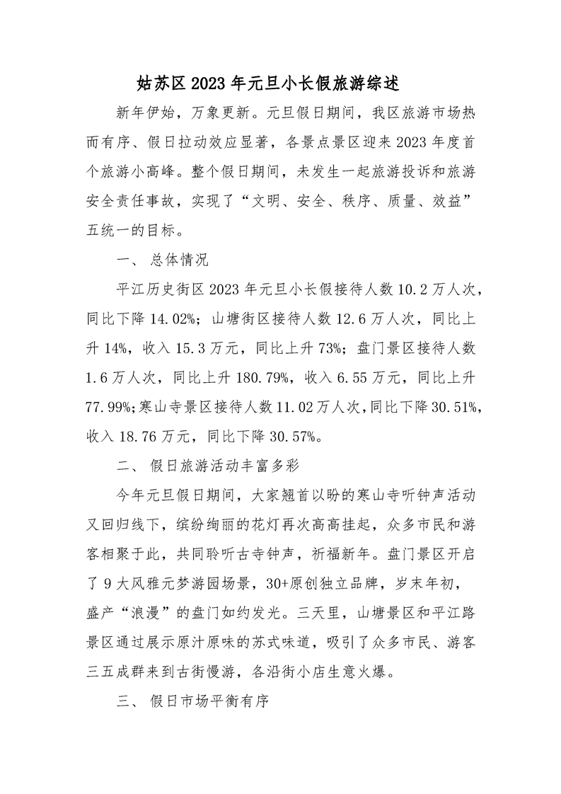 姑蘇區2023年元旦小長假旅游綜述