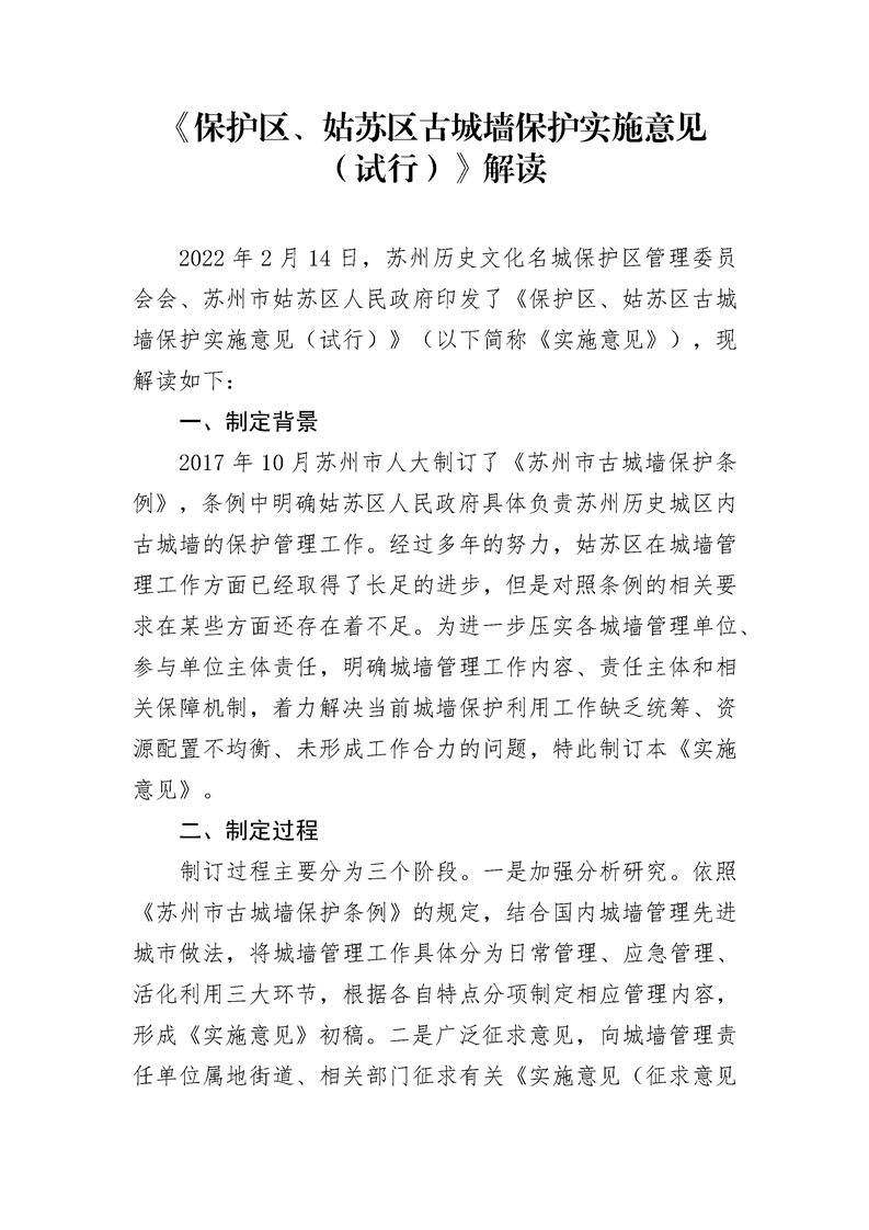 《保護區、姑蘇區古城墻保護實施意見(試行)》解讀