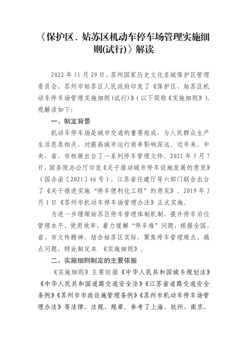 《保護區、姑蘇區機動車停車場管理實施細則(試行)》解讀