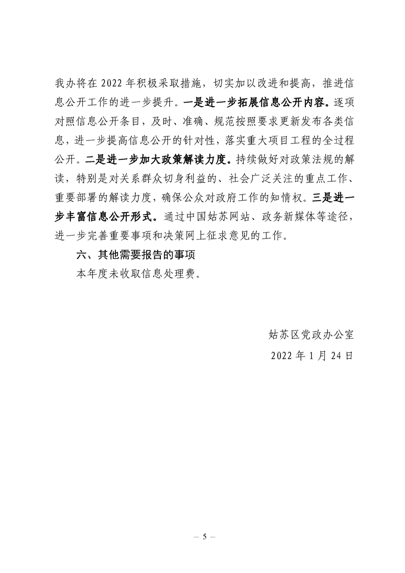 蘇州市姑蘇區黨政辦公室2021年政府信息公開工作年度報告