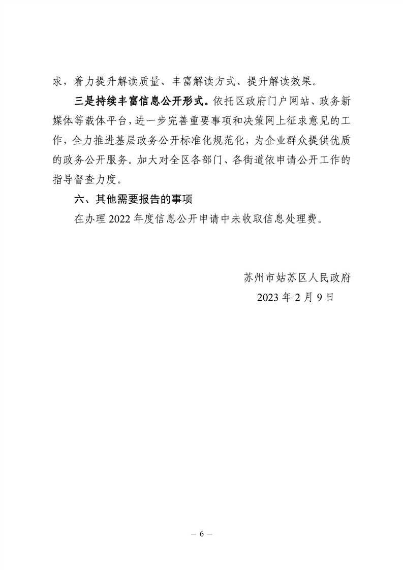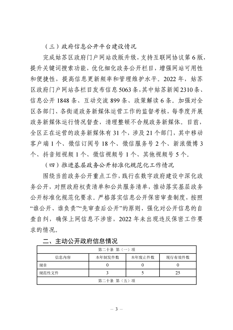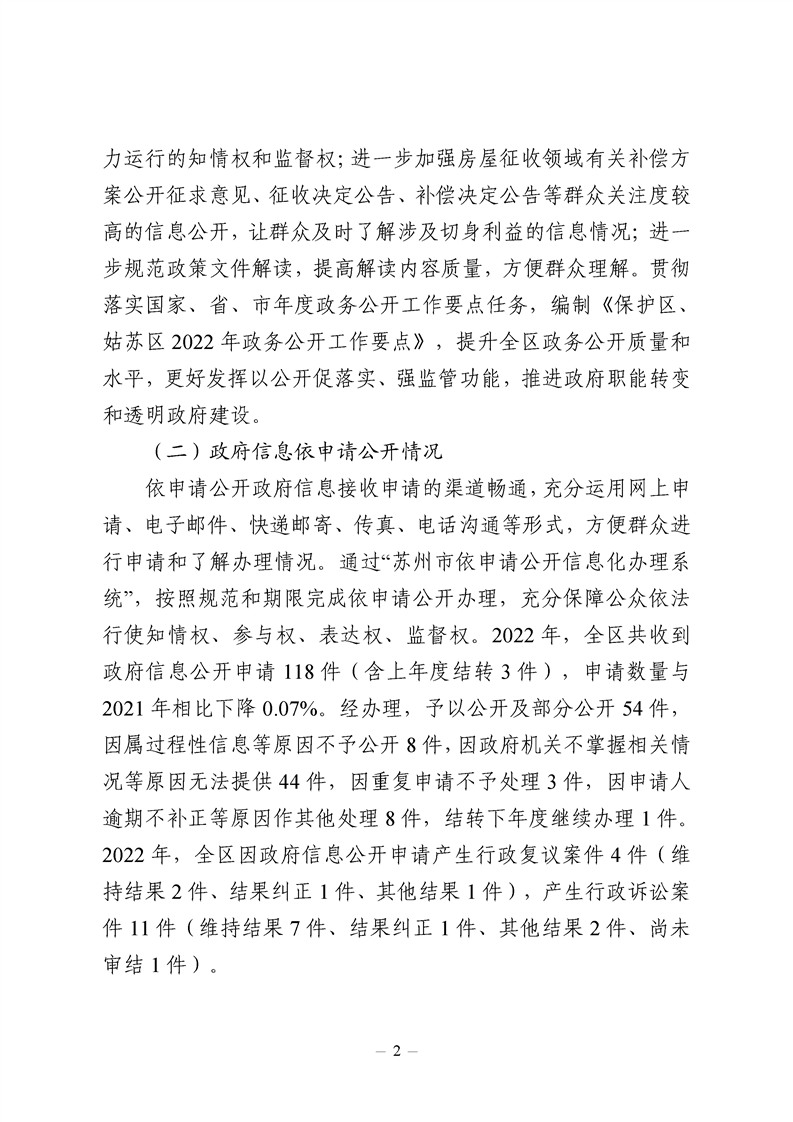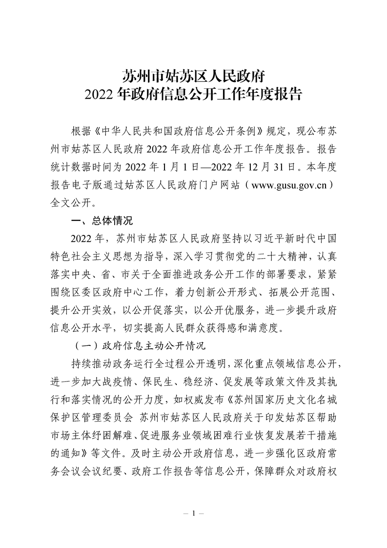 蘇州市姑蘇區人民政府2022年政府信息公開工作年度報告